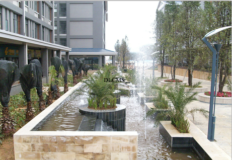 項目描述:景觀面積約8000㎡,包括水池水景、雕塑噴泉、場地鋪裝、燈光照明、管線埋設(shè)及植物種植等。